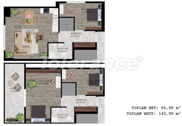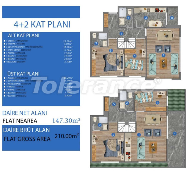 - vloeren van keramische tegels en/of laminaatparket van uitstekende kwaliteit